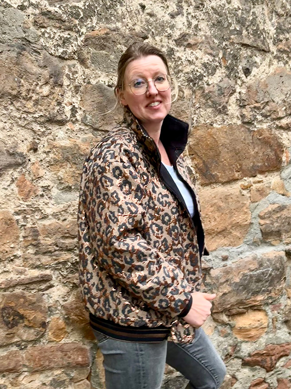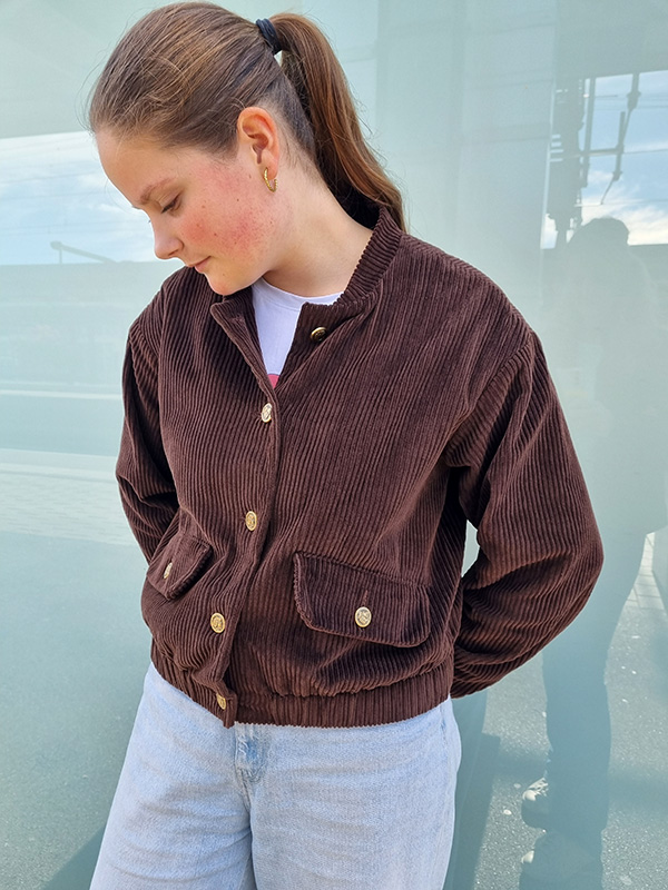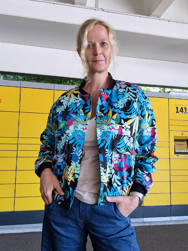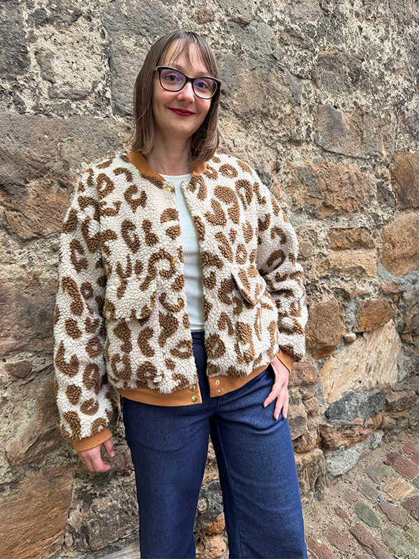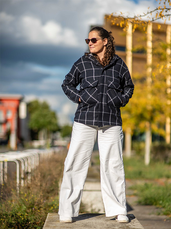 Das Schnittmuster für eine Damenjacke BESS hat überschnittene Schultern und lässige Ärmel. Dieser Blouson ist bequem und leicht oversize geschnitten, so dass