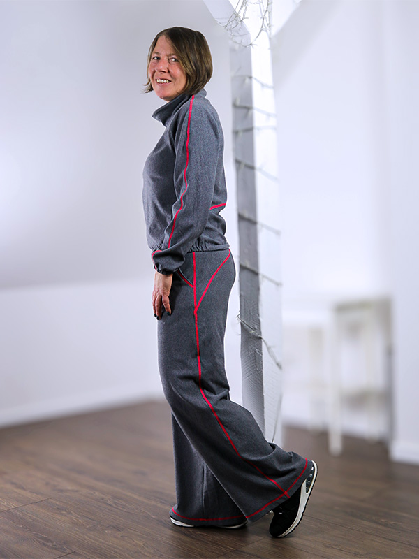 - oder - je nach Stoffwahl - sogar als schicke Variante mit Teilungen. Mit Sweat wirkt sie sportlich, mit weicher fallenden Stoffen wirkt sie modern und urban.